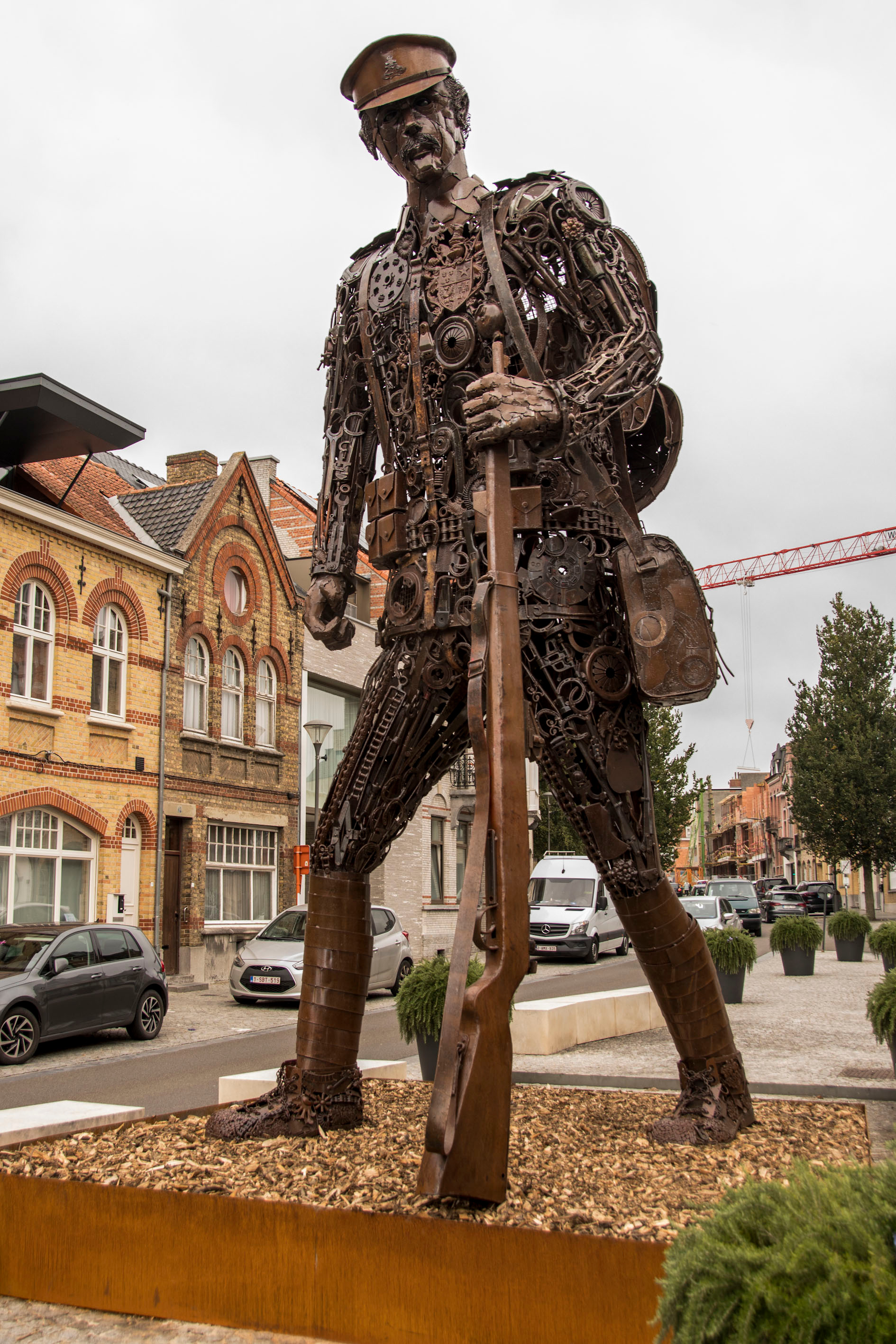 Het beeldwerk is opgesteld op het foto-eiland nabij de Menenpoort. Deze beeltenis kijkt naar de Menenpoort, symbolisch naar de namen van zij die niet meer terugkeerden van het slagveld.
